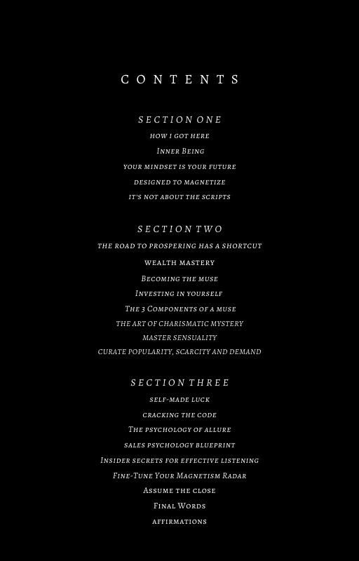 • How to master wealth principals, sensuality and tap into your innate ability to attract without following complicated systems
